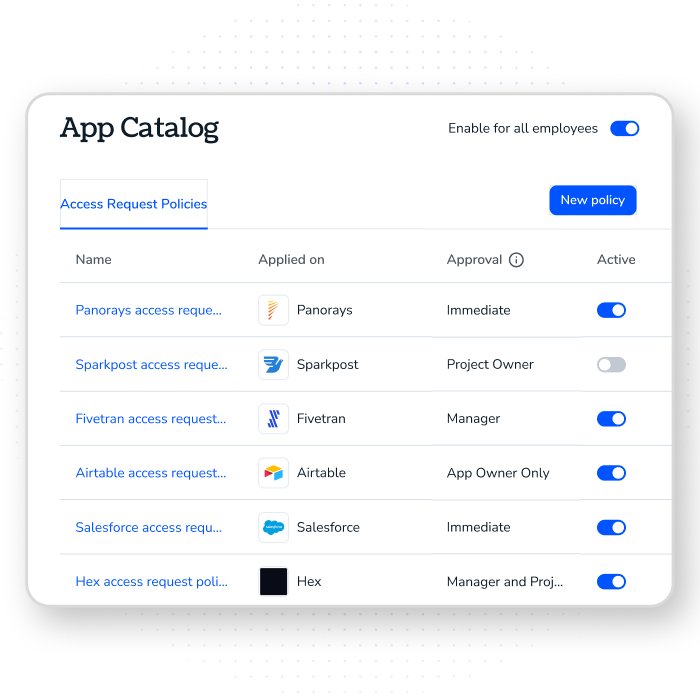 Access policies define exactly what users can access, under what conditions, and for how long. Approvals enforce those policies at request time, before access is provisioned across systems.
