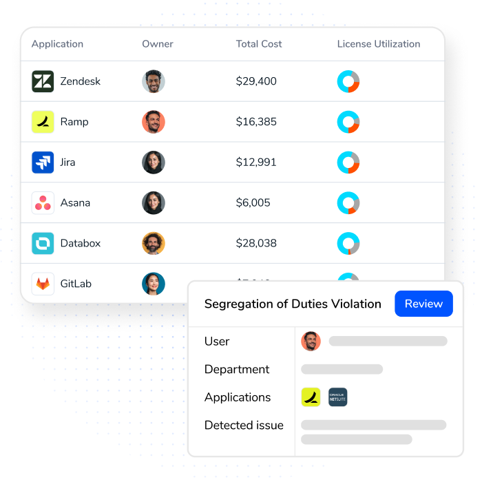 Torii connects continuously updated discovery to identity and entitlement context, then drives action through workflows—so access governance stays current, not quarterly. Torii also offers Access review capabillties, all of which are built on that same data, so reviewers validate what’s actually granted—not what a stale list says.
