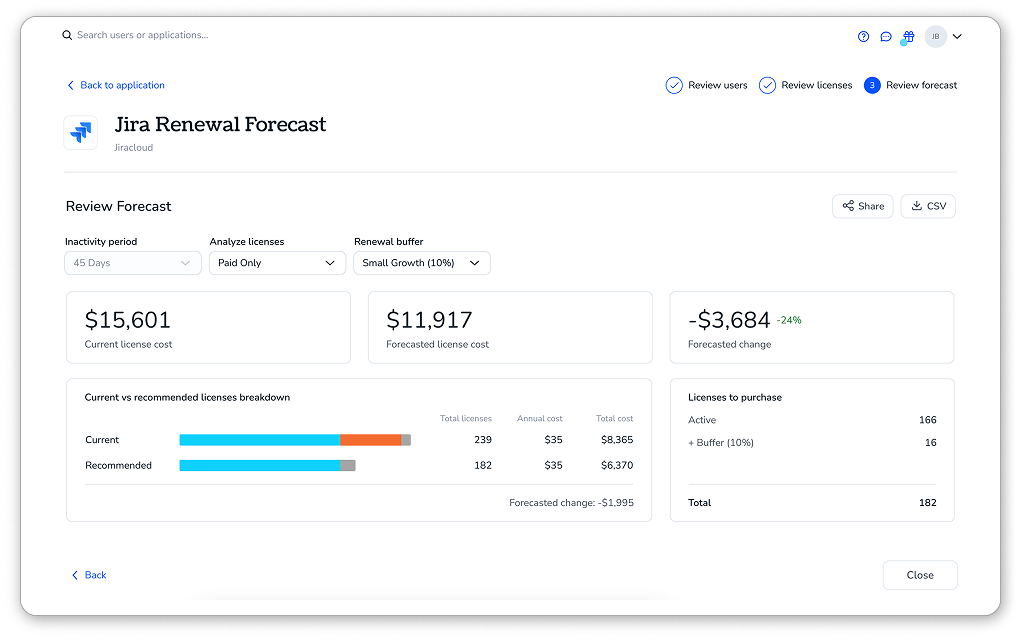 Know exactly which apps to renew, how many seats to keep, and which tier to buy