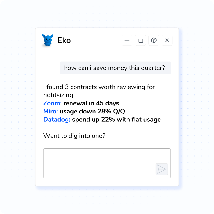 Torii’s AI assistant, Eko, runs on live discovery data, so recommendations are explainable, auditable, and accurate.