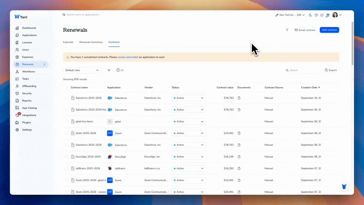 Manually entering license costs from contracts is tedious and error-prone. Now, Torii automatically extracts license quantities and costs from uploaded contracts, letting you fill in license details with one click—saving time, boosting accuracy, and unlocking instant cost insights.