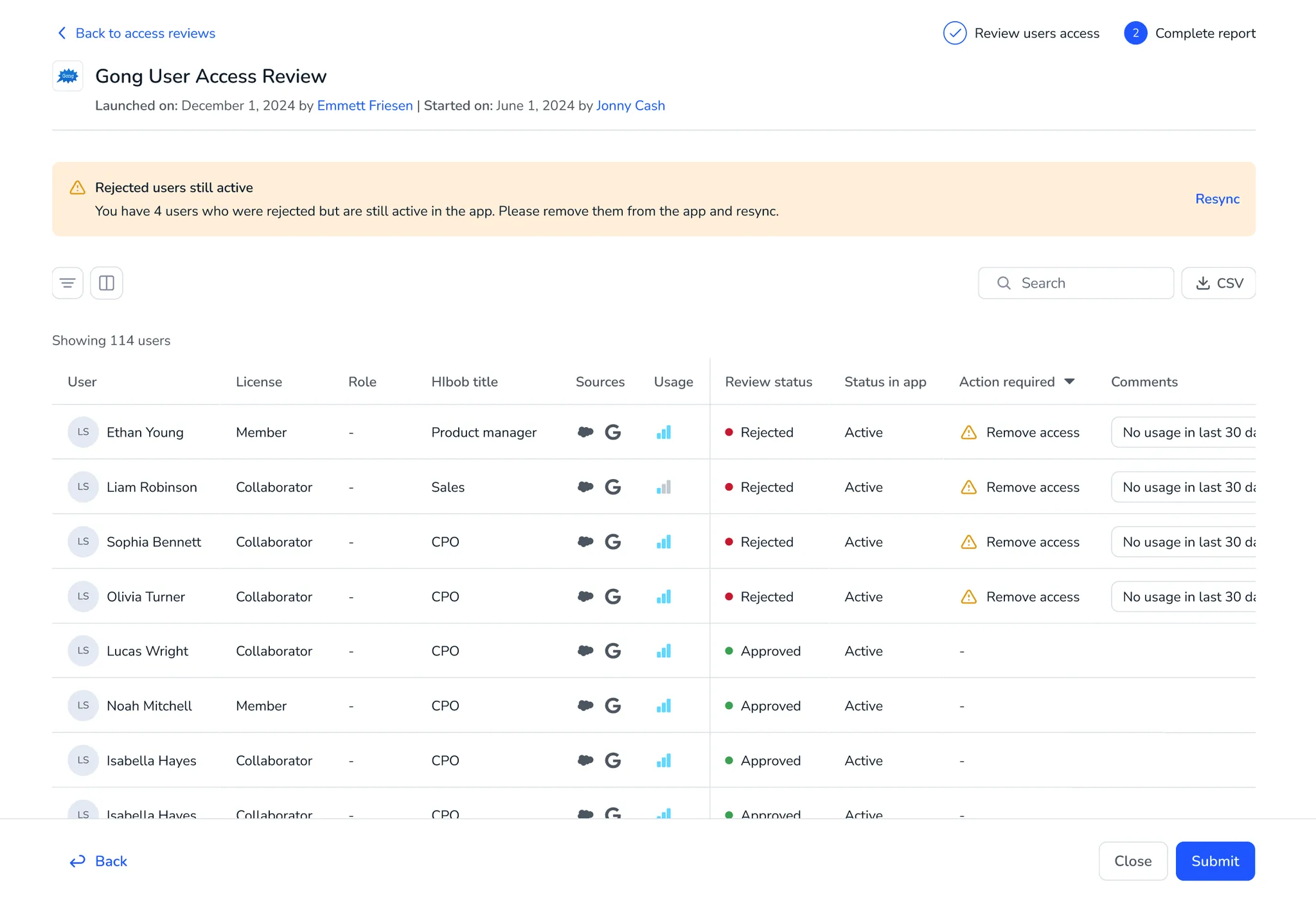 Action Required Flagging: Highlights users who still have access and prompts reviewers to take removal action.